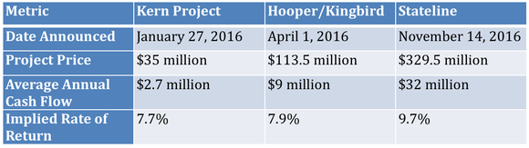 This year, 8point3 Energy Partners has made three major project purchases from SunPower and First Solar -- and you can see that rates of return have been on the rise all year.