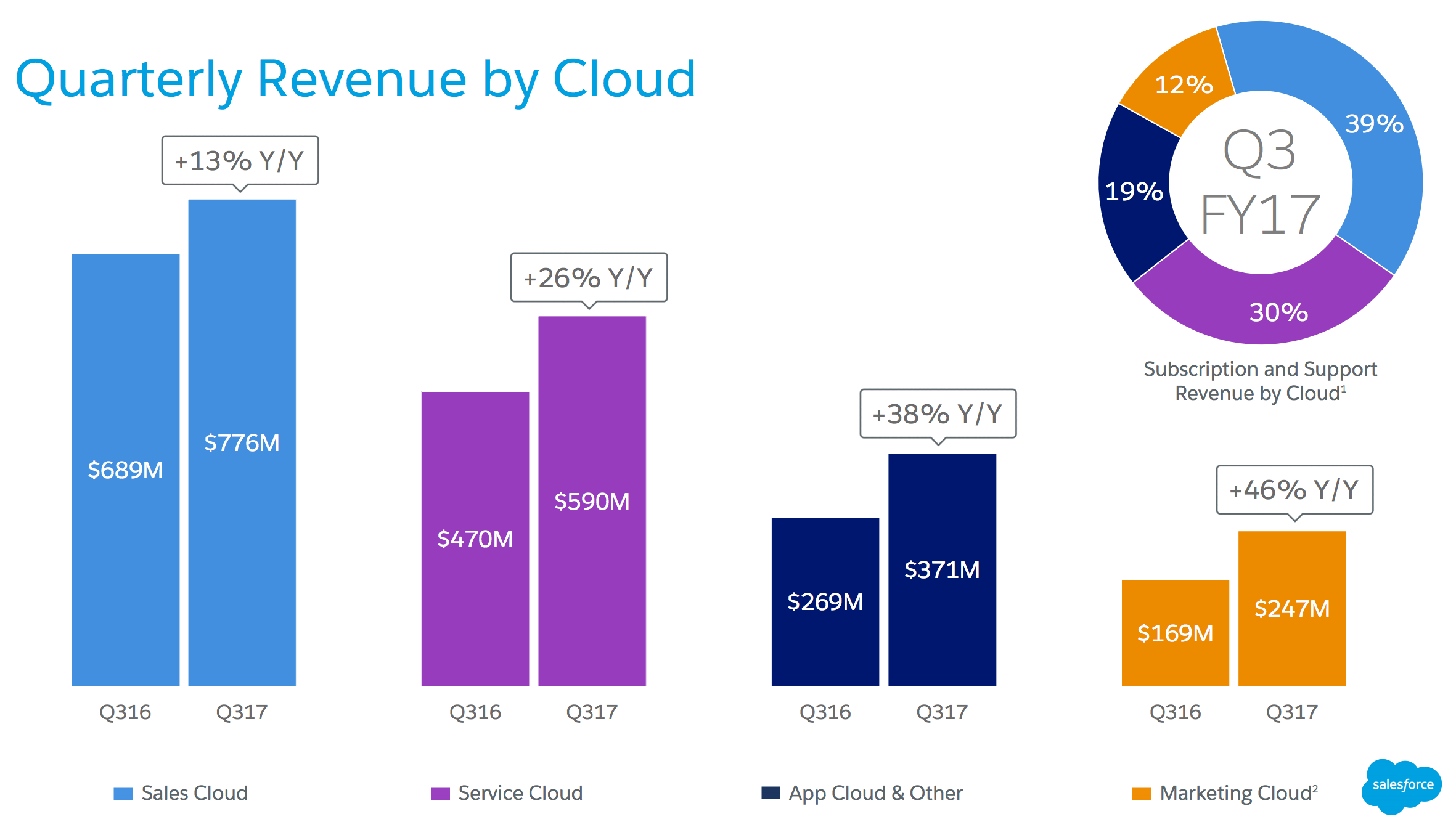 "I'm delighted to announce that we expect to deliver our first $10 billion year during our fiscal year 2018, which puts us well on the path to reach $20 billion faster than any other enterprise software company," said Chaiman and CEO Marc Benioff.