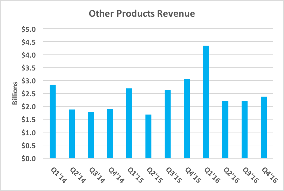 Displays and routers fall into Apple's "Other Products" segment, and the most interesting product within that segment is Apple Watch. Beyond Apple Watch, this has never been a particularly important category in terms of financial performance. It's more of a catch-all bucket for products that don't warrant dedicated disclosure, although I would argue that Apple Watch results should be disclosed since its performance has a lot more relevance to Apple's future as a nascent product category.