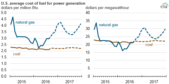 Wind and solar energy is competitive with natural gas, coal, or nuclear when utilities are looking for new generation. But the charts below show why renewable energy has a hard time competing against existing power plants. Natural gas and coal costs are $20 to $25 per MWh, which is nearly impossible for new wind or solar plants to compete with.