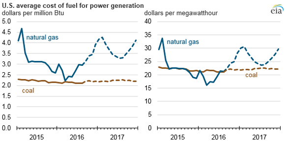 The problem is that wind and solar need to replace these old plants because U.S. electricity consumption simply isn't growing. According to the EIA, retail sales of electricity will actually decline from 10.31 billion kWh in 2014 to 10.28 billion kWh in 2017.