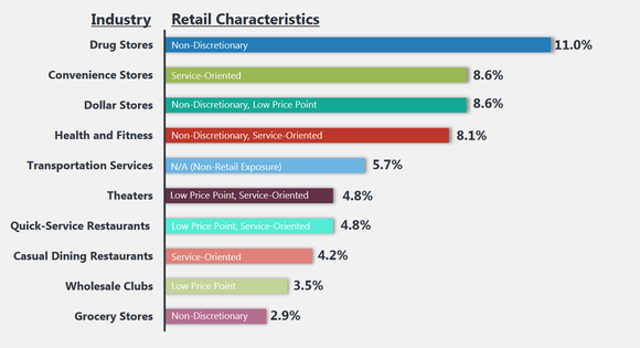 Specifically, virtually all of Realty Income's retail properties are either competition-resistant or recession-resistant (or both). Just to name a few of Realty Income's largest tenants: Walgreens sells goods that people need, no matter what the economy is doing. Dollar General and other dollar-store brands actually tend to do better in tough economic conditions, and often offer deals that even the largest online competitors can't match. And LA Fitness is a business people need to go to in person, which makes it immune to the threat of e-commerce stealing its market share.