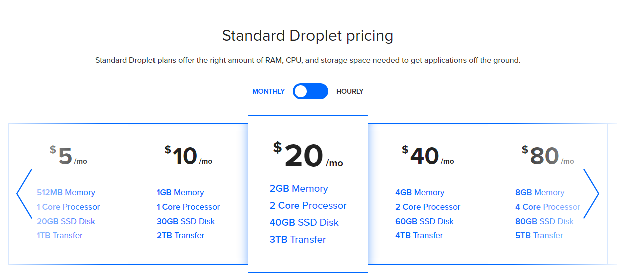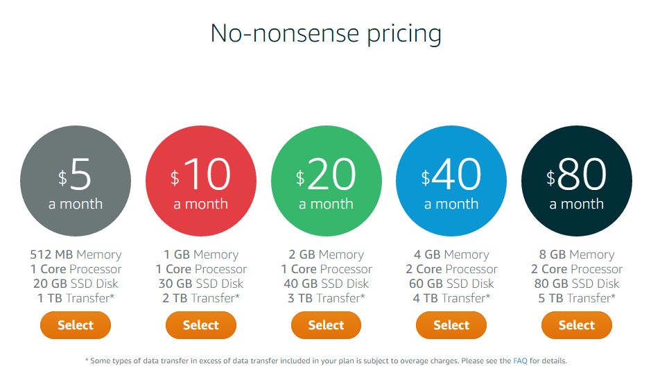 DigitalOcean offers five standard virtual private server options, with fixed compute, memory, and storage, and a set of configurations that customers can use to install applications like Wordpress instantly. In a few minutes, a fully functional virtual server is ready to go, with minimal effort on the part of the customer. The cheapest plan is just $5 per month, with resources sufficient for basic use cases. This business model has proven successful for the company. DigitalOcean claimed in August that it had 700,000 customers, compared to around 1 million for AWS.