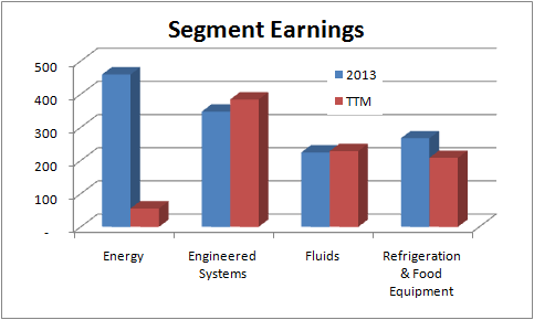 The relative importance of the segments and the dramatic decline in energy segment earnings can be seen below.