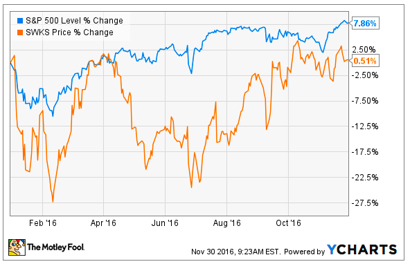 Skyworks Solutions has seen a few dips and pops in 2016, but its stock price is currently up just less than 1% since the beginning of the year.