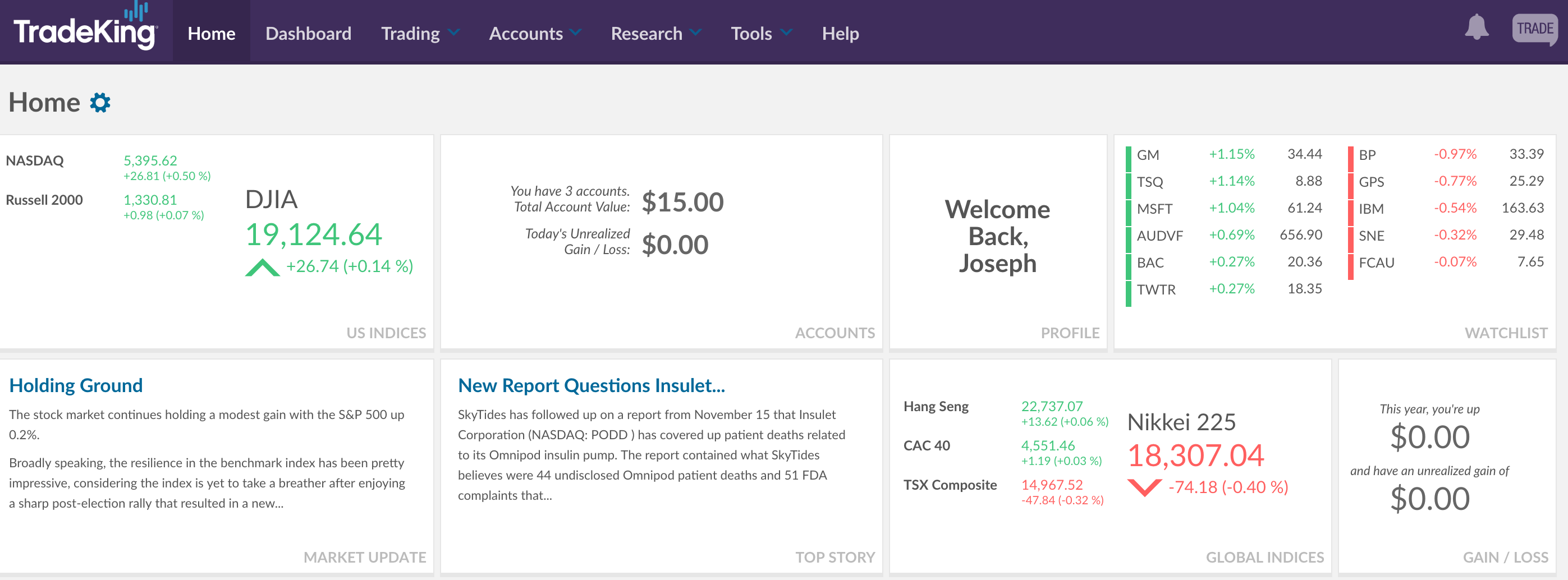 Even if you don't fund your account right away, you'll be automatically logged into your user dashboard so you can start exploring your TradeKing account.
