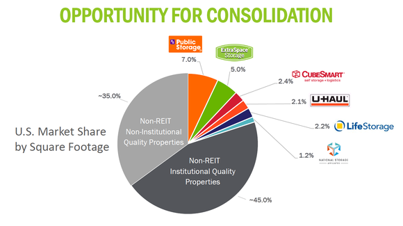 Occupancy levels in self-storage facilities are at an all-time high and the per-capita use of self-storage is growing, which gives operators pricing power and means that there is room to expand. Like the healthcare real estate industry, the storage business is rather fragmented and is young in terms of REIT presence, which creates opportunity for consolidation within the existing market.
