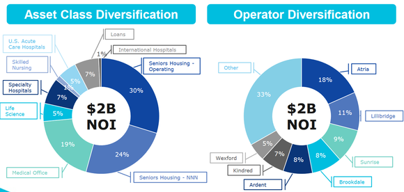 Ventas (VTR +1.28%) is one of the largest REITs specializing in healthcare properties. As of this writing, Ventas has about 1,300 properties, and the majority (54%) of the company's portfolio consists of senior housing, with large holdings in medical office buildings (19%), hospital properties (12%), and life science buildings (5%). Most of the properties are in attractive, high-barrier-to-entry markets with affluent residents.