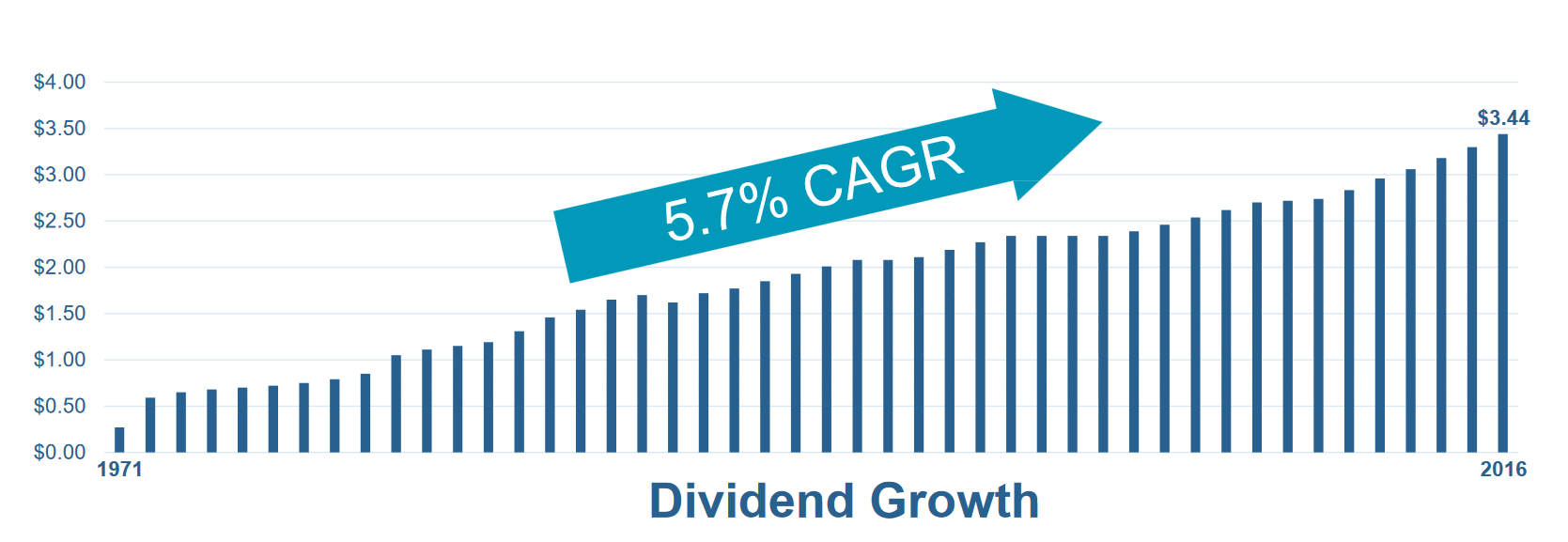 Welltower recently announced a $0.87 quarterly dividend rate for 2017, which translates to a yield of 5.5% based on the share price as of this writing. The November 2016 dividend payment represents the company's 182nd quarterly payment in a row.