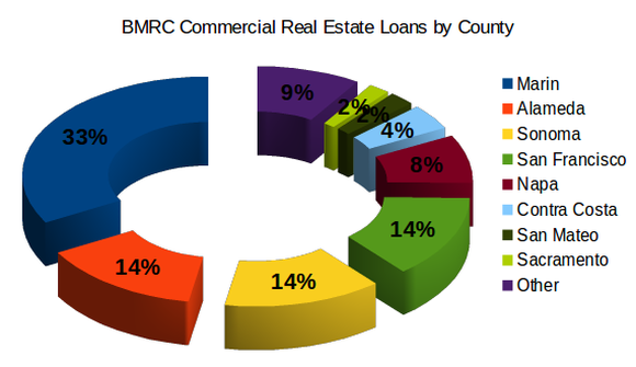 Marin county is one of the richest counties in the United States. It is mainly a bedroom community halfway between urban San Francisco and California's wine country in Napa and Sonoma counties. Alameda county is a similar bedroom community nearby, containing the cities of Oakland and Berkeley, and other smaller towns. Only 14% of their Commercial RE loans are for property in San Francisco and a tiny 2% are in San Mateo county (where many tech companies are headquartered). There is no significant concentration in Santa Clara county, the center of Silicon Valley.