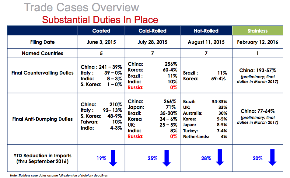 A short list of some recent U.S. trade case wins in the steel industry. Image source: AK Steel
