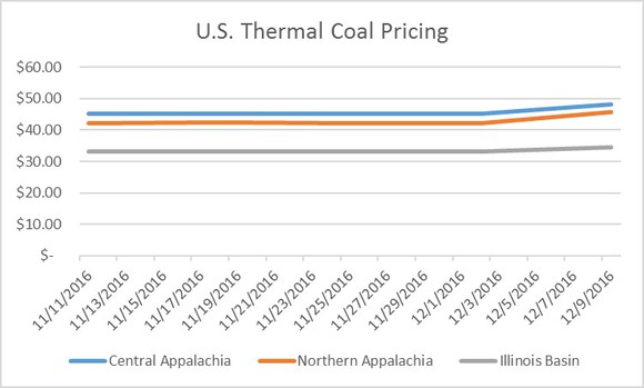 The muted reaction of domestic thermal coal prices since Donald Trump was elected president is noteworthy considering his campaign promises to end the war on coal. That said, the market knows that while he intends to take actions to repeal regulations that have hurt coal producers in recent years, that will not necessarily spur demand for more coal in the country, especially considering all of the planned coal-fired power plant retirements on the horizon.