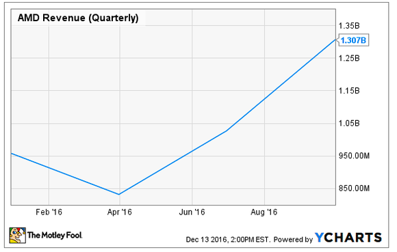 AMD expects revenue to be up just 6% for full-year 2016. Investors should keep a close eye on the company's ability grow sales -- and whether it can continue pushing revenue back in the right direction as AMD heads into the new year.
