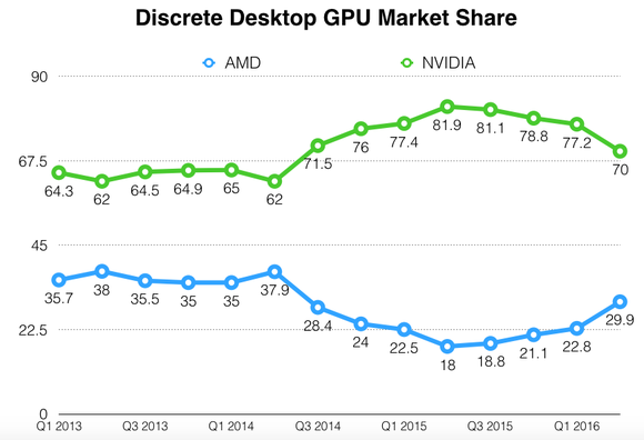 While AMD has had a rough few years of falling revenue and discrete desktop GPU market share, the company appears to be making up for lost time. If it can can continue on this path -- and benefit from the rise of VR as well -- then AMD investors can expect another promising year from the company.