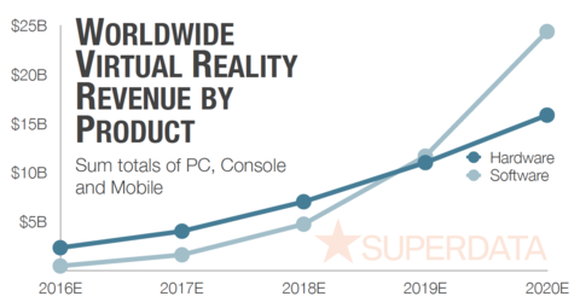 The virtual reality (VR) market is just getting started, but AMD is in fantastic position to benefit. Here's what the virtual reality opportunity looks like over the next few years, as combined sales of hardware and software jump from under $5 billion in 2016 to an estimated $40 billion by 2020 .