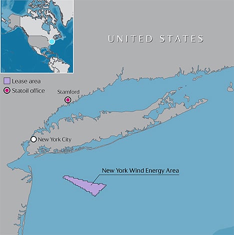 The wind lease Statoil won is off the cost of Long Island in New York (shown below) in 79,350 acres of water. The winning bid for the lease was $42.47 million.
