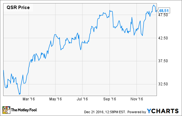 Those changes, as well as continued growth from the company's Tim Hortons brand, led to a strong 2016. The company raised its total revenue slightly from $2.99 billion through three quarters of 2015 to $3.04 billion during the same nine months in 2016. More important than the small increase in sales was the fact that the company raised net income attributable to common shareholders over those periods from just over $50 million to $227 million.