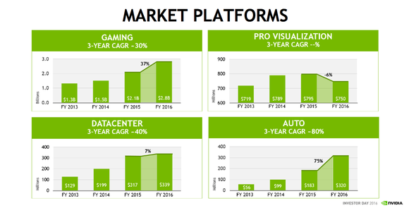 Improvements in graphics capability should create a major upgrade cycle as graphics technology improves in next-gen gaming hardware. NVIDIA has an installed base of around 80 million GeForce users (GeForce is NVIDIA's GPU line for PC gamers). Most of those gamers are using older GPUs. NVIDIA started shipping GPUs based on the new Pascal architecture -- the layout design of a processor -- in the second quarter. Only a third of NVIDIA's GeForce users have upgraded to Maxwell, the previous architecture. As technology advances, it is inevitable that those gamers who haven't upgraded will begin to upgrade to newer GPUs.
