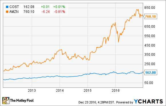Costco (COST +1.56%) and Amazon.com (AMZN 0.22%) both compete for value-conscious customers while sharing a lot of the same user base.