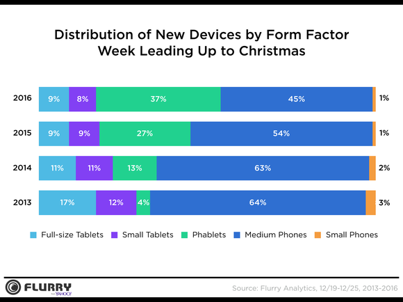 2014's push into phablet territory with the iPhone 6 and 6 Plus not only created a massive upgrade cycle for Apple, but also validated and accelerated the shifting consumer preference. You can see in Flurry's estimates how phablets are taking over (Flurry technically only considers the Plus models as phablets.) Note the big jump from 2013 to 2014.