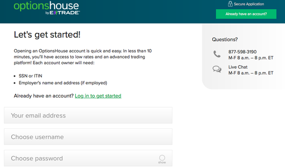 If you have any problems filling out the application, OptionsHouse lists its customer service phone number and an online chat feature on the right-hand side of the application page.