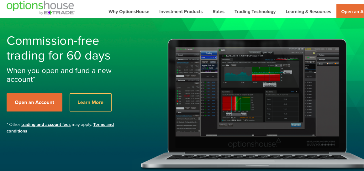 OptionsHouse charges $4.95 per stock trade and doesn't have any minimum balance requirements to open an account (you can find out more about the company's feed and prices here).
