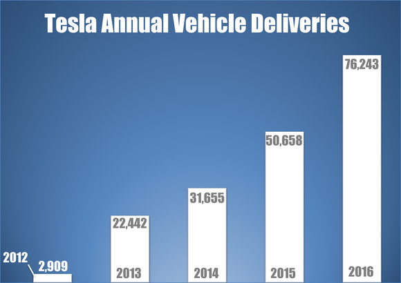 - It has increased deliveries at a rate of 41% or higher during each of the last four years, with deliveries increasing 51% year-over-year in 2016.