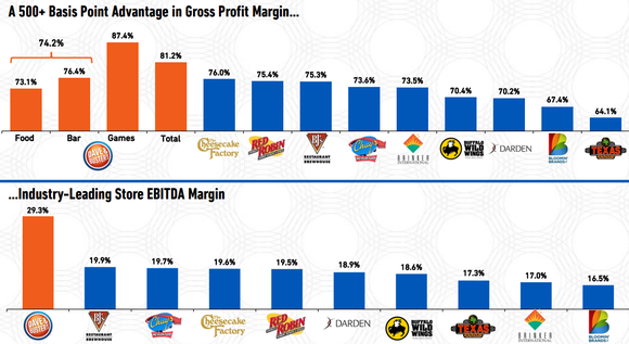 While the company is young, its brand is already widely recognized, with 93% awareness among casual-dining consumers in existing markets, according to the company's 2016 investor presentation. Further, its customers' average household income of $75,000-plus could help stave off drastic sales declines in the event of a slight economic downturn. The company's unique focus on games also helps fuel its strong financials, as you can see below: