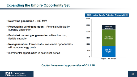 Algonquin is thus planning close to $2 billion in new investments in Empire-related generation facilities over the next five years, investments that are expected to actually reduce the subsidiary's energy generation costs. This is expected to boost Empire District's return on equity from the current rate of 7.4% up to the 9%-10% range by 2021.