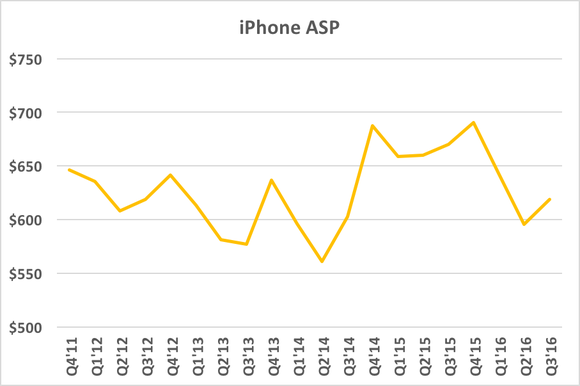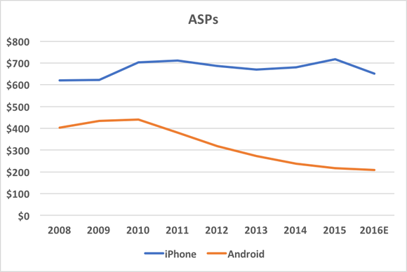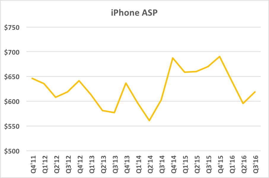 Speaking of superior pricing power, Apple has a unique ability within the smartphone industry to price at a premium with little pressure to reduce prices. Average selling prices (ASPs) are generally resilient (albeit with natural fluctuations), with no signs of deteriorating even amid intense competition. Apple is the only smartphone manufacturer that simply chooses not to participate in lower-end pricing segments.