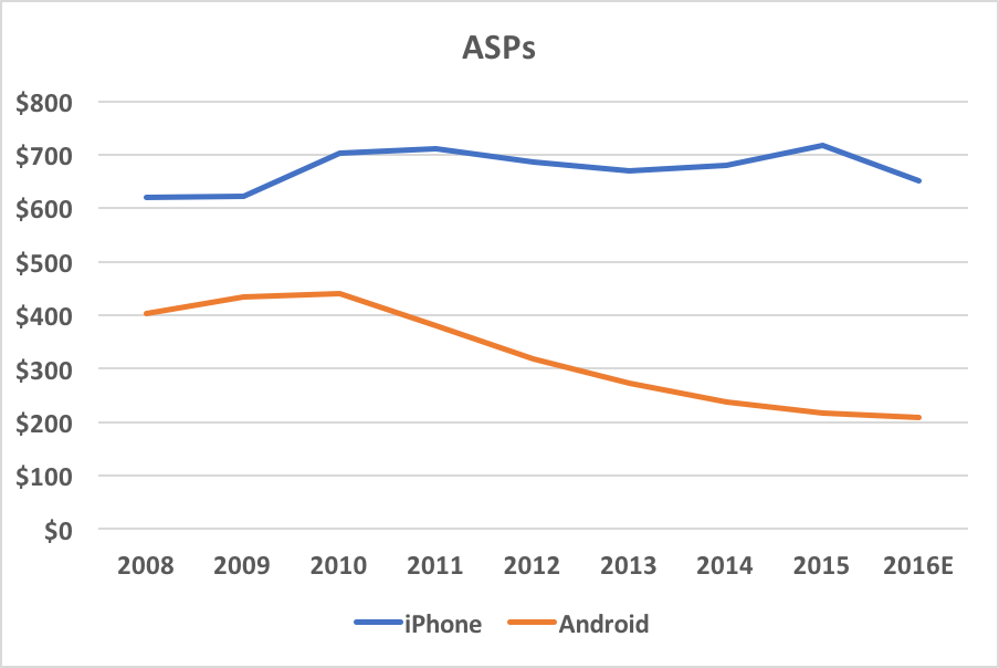 Rapid commoditization of Android original equipment manufacturers has led to intense price competition and eroding prices and profits for the entire Android army. Of course, the upside of this approach is dramatic gains in unit share -- Android is by far the most dominant mobile platform today.