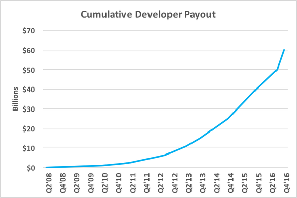With the rise of the iPhone, the App Store has grown in lockstep. Apple announced just last week that it paid out $20 billion in 2016 to developers, and there are now over 2.2 million apps available from the repository. Apple often notes that it has created an entire app economy, and it's not lying.