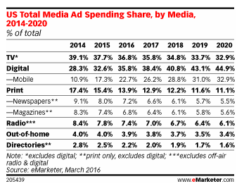 If you think you've missed the boat, rest assured you haven't. A March 2016 report from eMarketer shows that there's still a lot of room for internet advertising to grow.