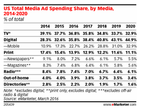 If you think you've missed the boat, rest assured you haven't. A March 2016 report from eMarketer shows that there's still a lot of room for internet advertising to grow.