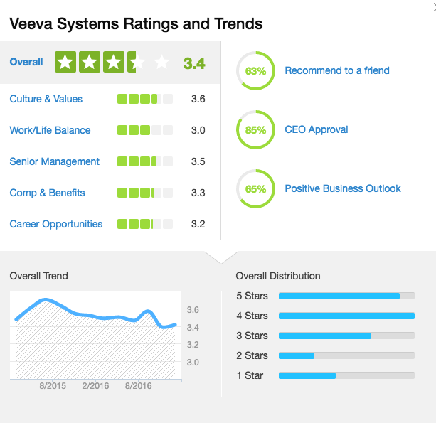 This doesn't paint the most flattering view of the company. To be sure, it's clear that these employees understand that Veeva has caught lightning in a bottle -- 70% have a positive outlook for the business, and 20% have a neutral outlook. Only 10% have a negative outlook.