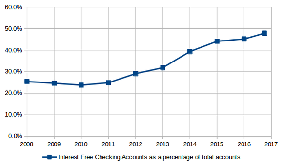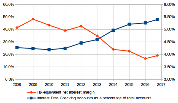 Bank of Marin has moved toward interest free checking accounts because they are the cheapest source of funds: