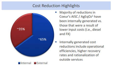 A quick breakdown of Coeur Mining's cost savings. Image source: Coeur Mining In.c
