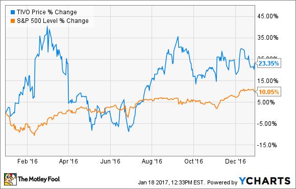 Shares of TiVo (TIVO +0.00%) rose 23.3% in 2016, according to data from S&P Global Market Intelligence. It was a roller coaster of a year, and this is not quite the digital video recorder specialist you used to know.