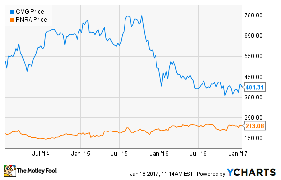 Chipotle (CMG +0.02%) and Panera Bread (PNRA +0.00%) compete for the same customers using a similar strategy.
