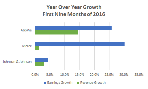 Here's the funny thing about Johnson & Johnson emerging as the best big pharma stock of 2016: The company's growth wasn't all that great. In fact, both Merck and AbbVie outperformed J&J in terms of revenue growth and earnings growth in the first nine months of last year.