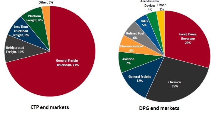 Wabash, though, gets a major chunk of revenues from its core commercial trailer products (CTP) segment, which manufactures semi-trailers for transportation companies like FedEx and J.B. Hunt. Here's a quick look at the key end markets Wabash serves through its two segments.