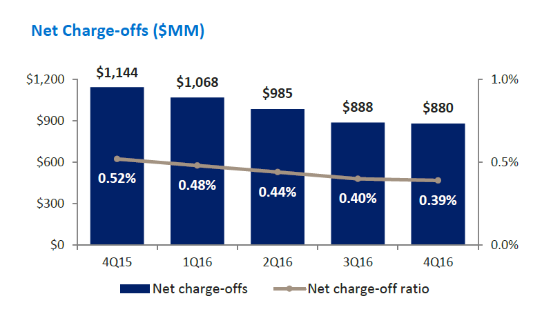 Furthermore, the bank's net charge-offs continue to fall, dropping by 12% year over year.