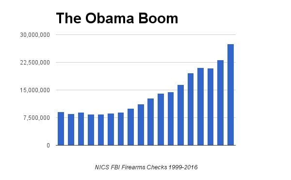 That's not necessarily true, though. Black Friday saw the biggest single day ever for the FBI to process background checks, and December's investigations, while lower than the prior year and snapping a 19-month streak of higher numbers of checks, was still the biggest December ever without a mass shooting.