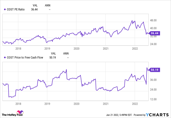 Costco is trading at a price-to-earnings (P/E) ratio of 36 and a price-to-free cash flow ratio of 50, suggesting a valuation near the higher end of its average over the last five years. Investors are undoubtedly aware of retailer's excellent prospects. Therefore, it may be prudent for those interested in buying Costco stock to wait for a pullback before starting a position. Given the volatile stock market of late, you may not have to wait very long.