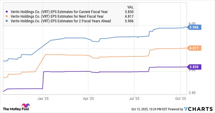 Even though Vertiv stock has shot up phenomenally in the past six months, it can be bought at 34 times forward earnings. That's lower than the U.S. technology sector's average price-to-earnings ratio of 52. Buying Vertiv at this valuation looks like the smart thing to do, considering the terrific pace at which its earnings have been growing.