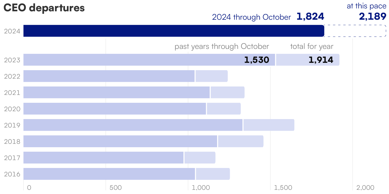 Patience is running short in the boardroom. While markets soar to new heights, companies left behind face mounting pressure for change. 2023 saw the highest rate of CEO turnover in a decade. So far, 2024 is on pace to eclipse that record.