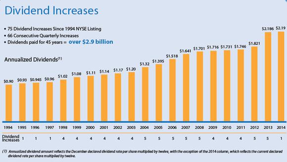 "The Monthly Dividend Company" implies that this REIT is a "blue chip" brand that can be relied upon – in good times and bad. With over 19 years in a row of dividend increases, this blue chip has proven its commitment to shareholders – to maintain and increase its dividend. It's one thing to trademark a company and say how great you are; it's another thing do it – a dividend payment is the ultimate sign of corporate strength and safety.