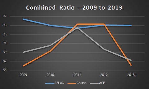 ACE is arguably the strongest underwriter, with a consistently low combined ratio compared to the others. It hasn't been the best every year, but it's been the most consistent. It's the youngest of the three, the most geographically diverse, and it offers the most diverse product line. Adding the lowest payout ratio and the largest dividend yield, we come out with a hands down winner as ACE being the wise and steady tortoise with the best opportunity for growth.