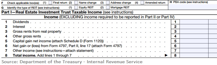 To better understand the word itself, I'll break it down. Shown below is an example of a tax form from the Internal Revenue Service (IRS) that determines a REITs "income."