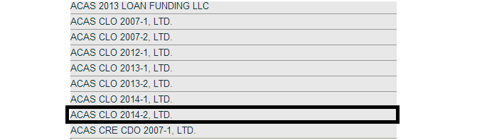 Notably, the latest CLO, which was announced on Wednesday, may not be the last in 2014. A search of Cayman Islands business and trust listings reveals a filing for ACAS CLO 2014-2.